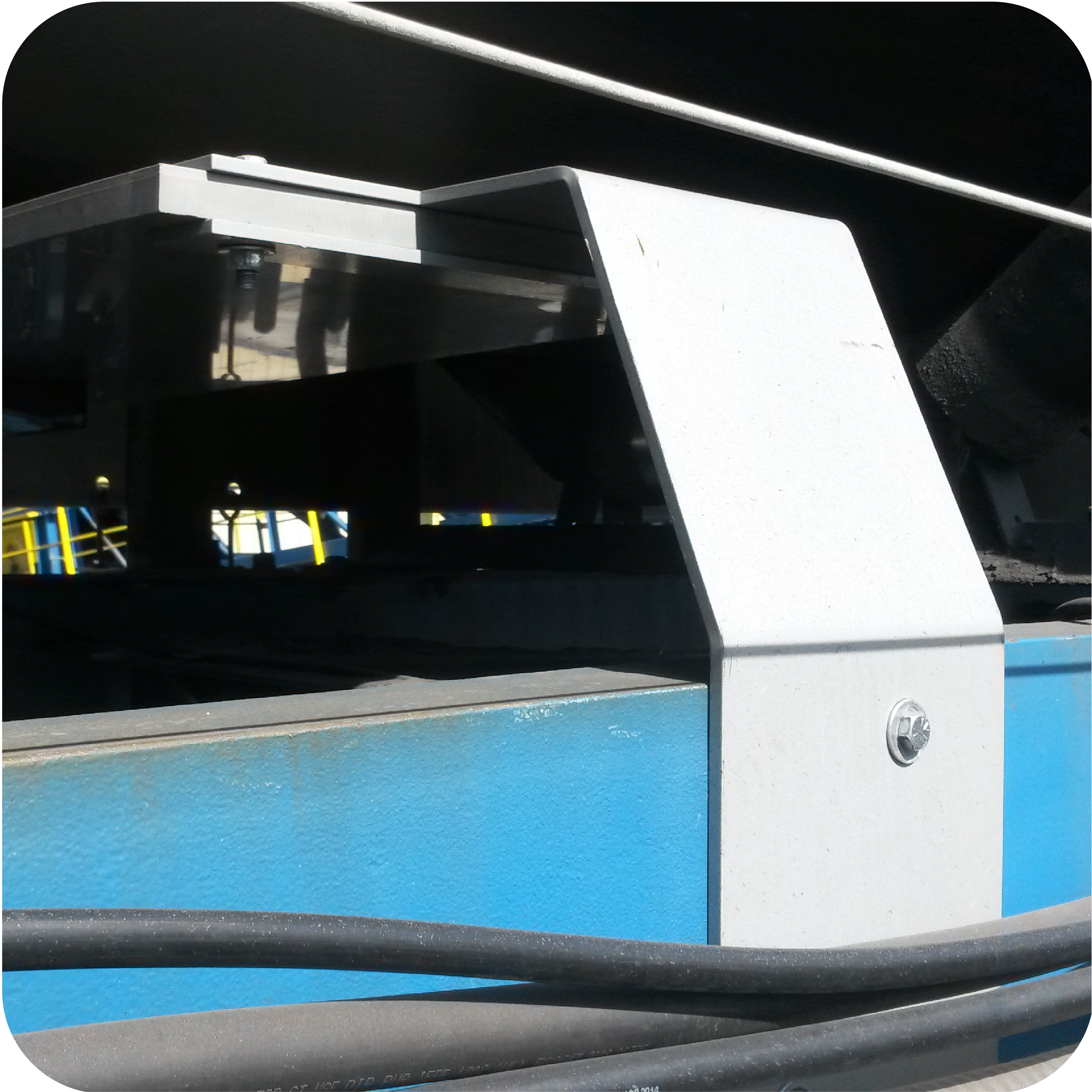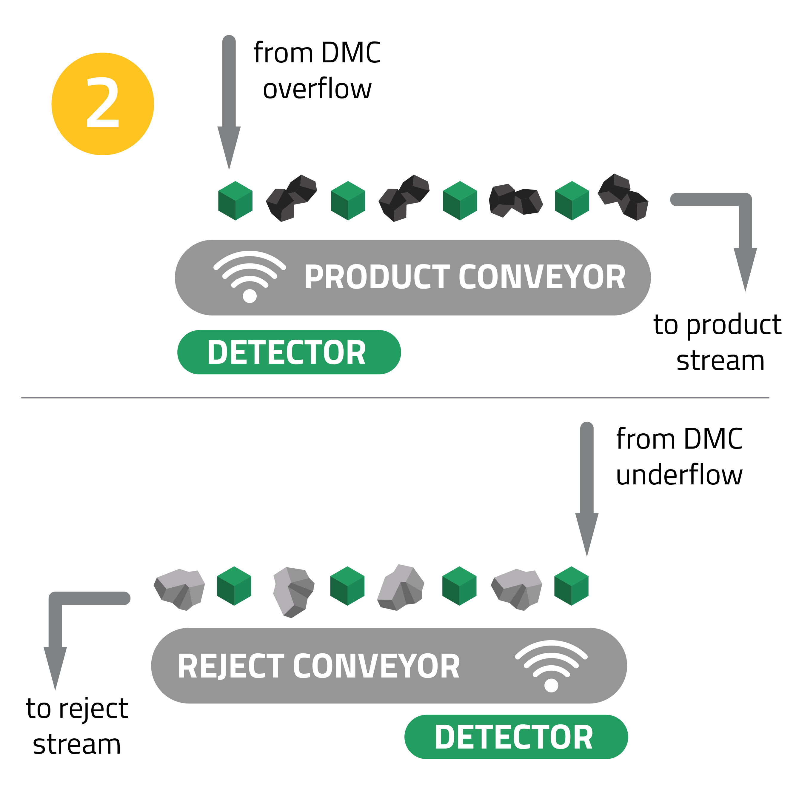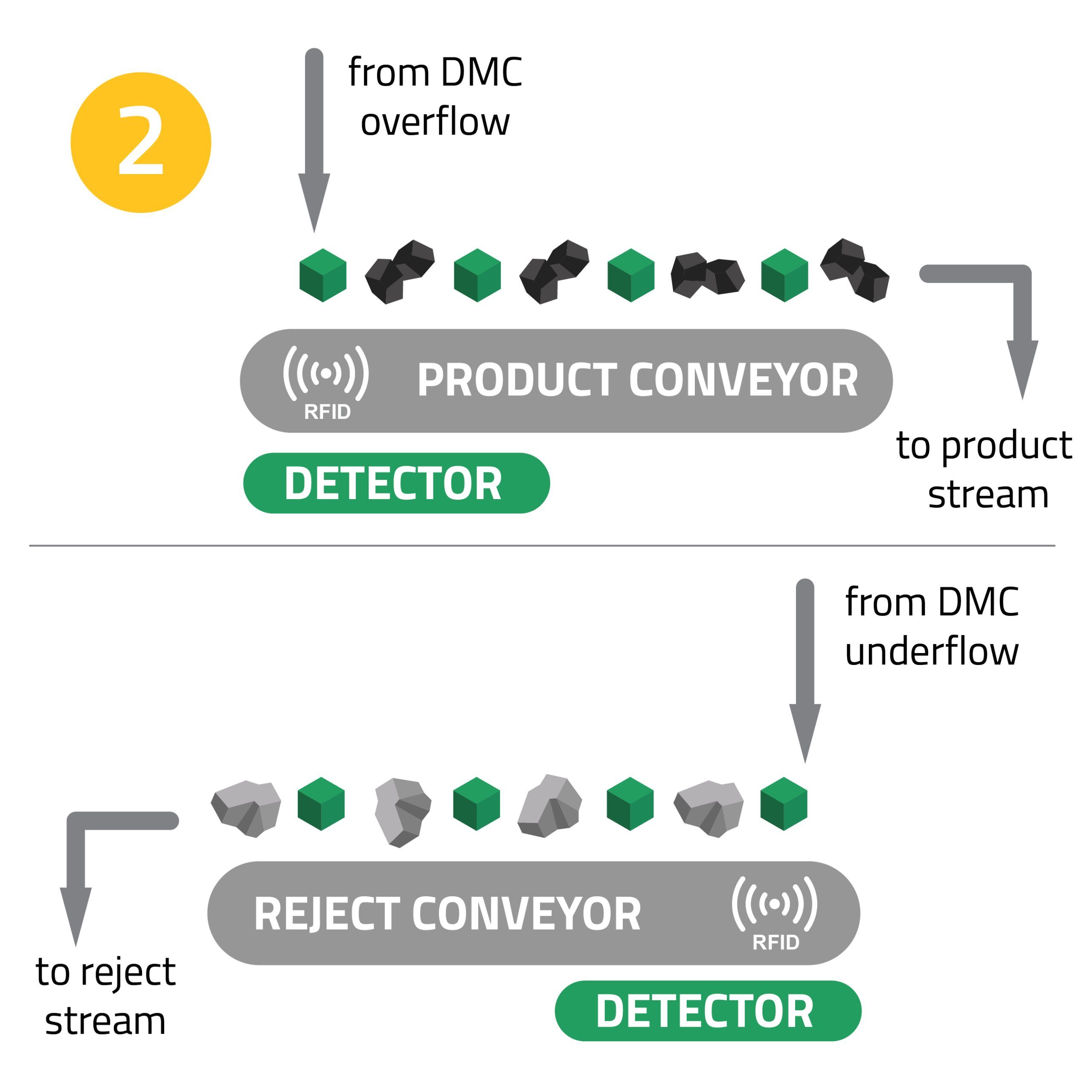 Detector installed under product conveyor.